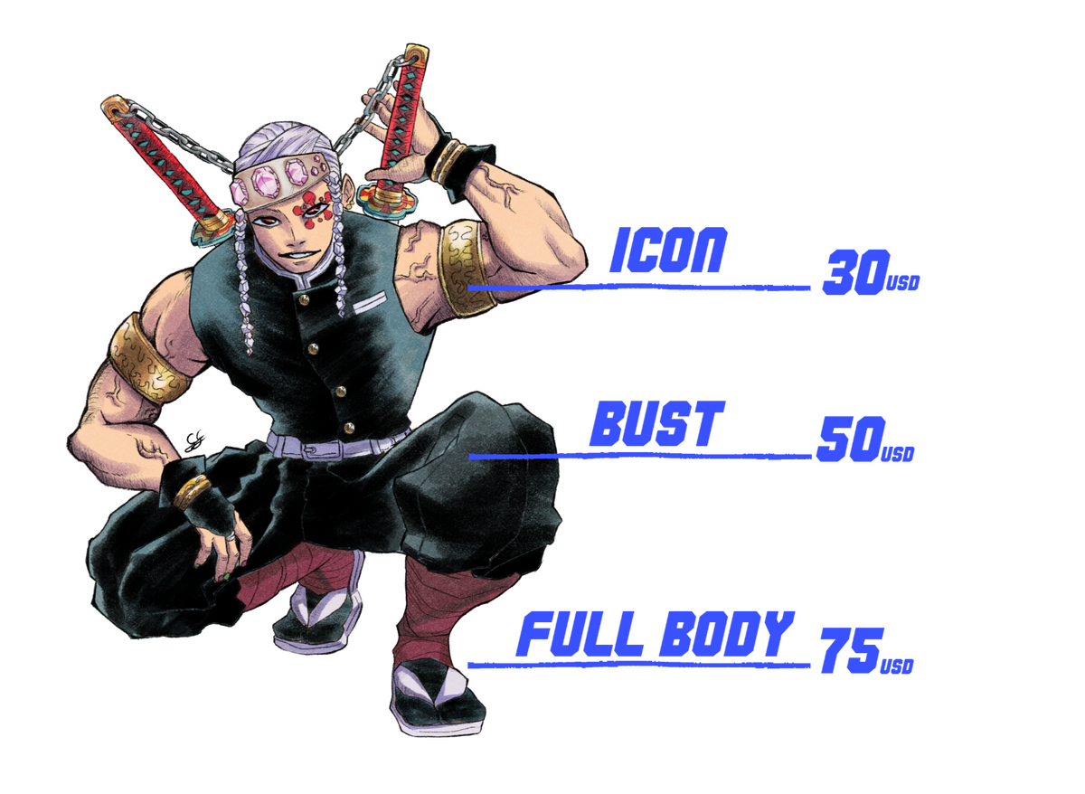 7. Payments will be made primarily through PayPal. (After payment, I will begin working on your commission!)8. I do not issue refunds unless a reason is issued. I would prefer it if you talked to me first about any issues!9. Backing out on a commission (before payment is sent) will not result in any issues as long as you communicate with me!10. I will initiate the transaction to avoid issues. Do not send me any kind of payment until I have confirmed I have accepted your commission!11. Turnaround time is usually 1-2 weeks but may be affected by your place on the waiting list and the complexity of the piece.12. Prices may vary depending on the complexity and amount of detail and characters.